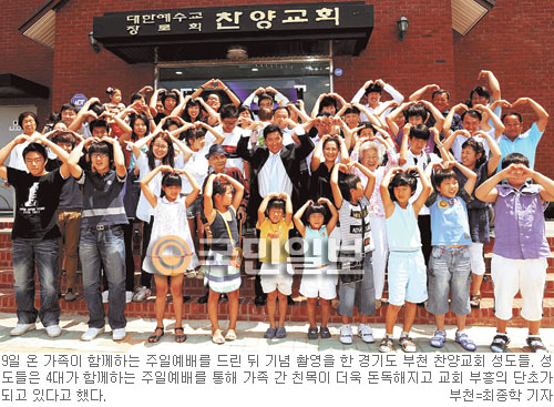 경기도 부천시 작동 찬양교회(담임목사 김성우)는 매주일 오전 11시 젖먹이 아기부터 어른까지 온 가족이 함께 예배를 드린다. 물론 성경공부 모임은 부서별로 진행된다. 4대가 함께하는 주일예배는 지난해부터 10개월째 이어지고 있다.