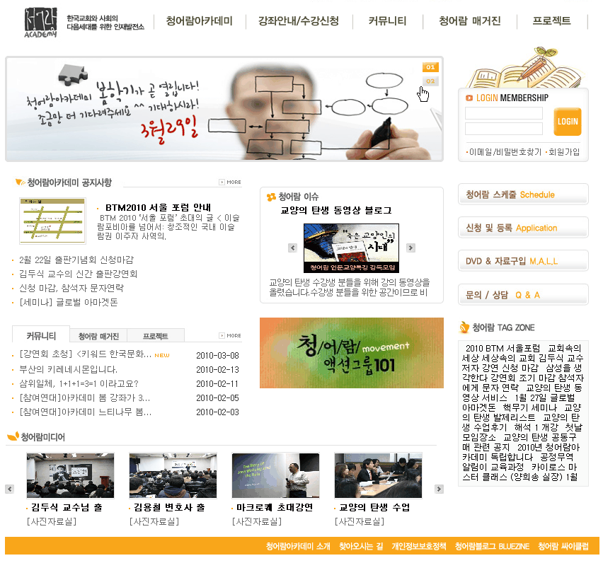 청년 아카데미, 영상제작, 정치, 서양미술, 영화 등 강의, 수강신청 안내.