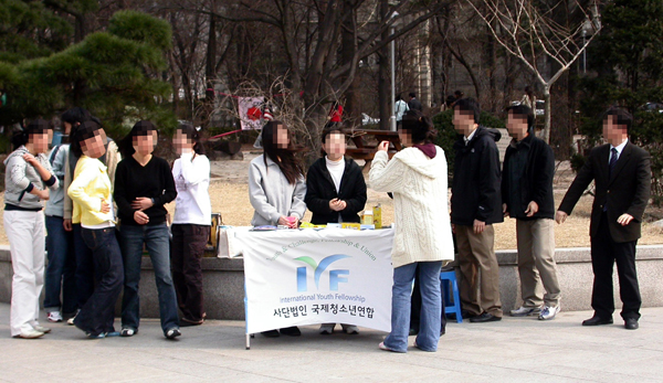 지능화되고 있는 이단 대전충청지역 학원복음화협의회가 제작한 <손에 잡히는 이단 + 사이비 정보 가이드>에 의하면 캠퍼스 내 이단은 선교단체를 사칭하거나 문화 봉사 학술 동아리로 위장해 학생들을 미혹하고 있는 것으로 알려졌다. 즉 캠퍼스에 침투하고 있는 이단들의 활동이 지능화되고 있다는 것이다. 일본어 공부(통일교), 영어 동아리, 영어 말하기 대회(IYF), 어학원(삼육SDA) 등을 활용하여 대학생들을 모으고, 포교활동을 벌이거나 단체홍보를 한다. 또 응원단, 연극, 전시회, 음악회 등 대학생들이 거부감 없이 받아들이기 편한 이벤트를 열어 일반 학생들에게 다가선다. 최근 사회적으로 좋은 반응을 얻고 있는 국내, 국외 자원봉사를 위한 단체를 만들고, 활동내역을 언론사에 홍보한다. 봉사활동을 통하여 순수한 참가자들에게 단체의 종교적 내용을 교육한다. Young 2080, JOY, Godpeople, 삼일교회 등 기존 유명 단체, 교회를 사칭하여 설문조사를 하거나 연락처를 얻어 개인적으로 접근하고 있다. 해외선교단체 훈련생으로 가장하여 선교훈련코스 중 성경공부를 가르쳐 본 경험이 필요하다며 도움을 요청하여 1:1 성경공부를 통해 교리를 가르치기도 한다.