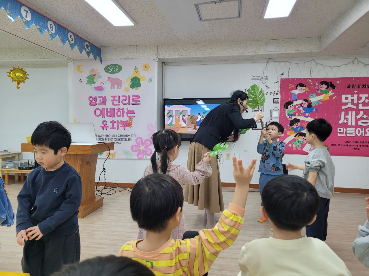 사람들은 종려나무 가지를 흔들며